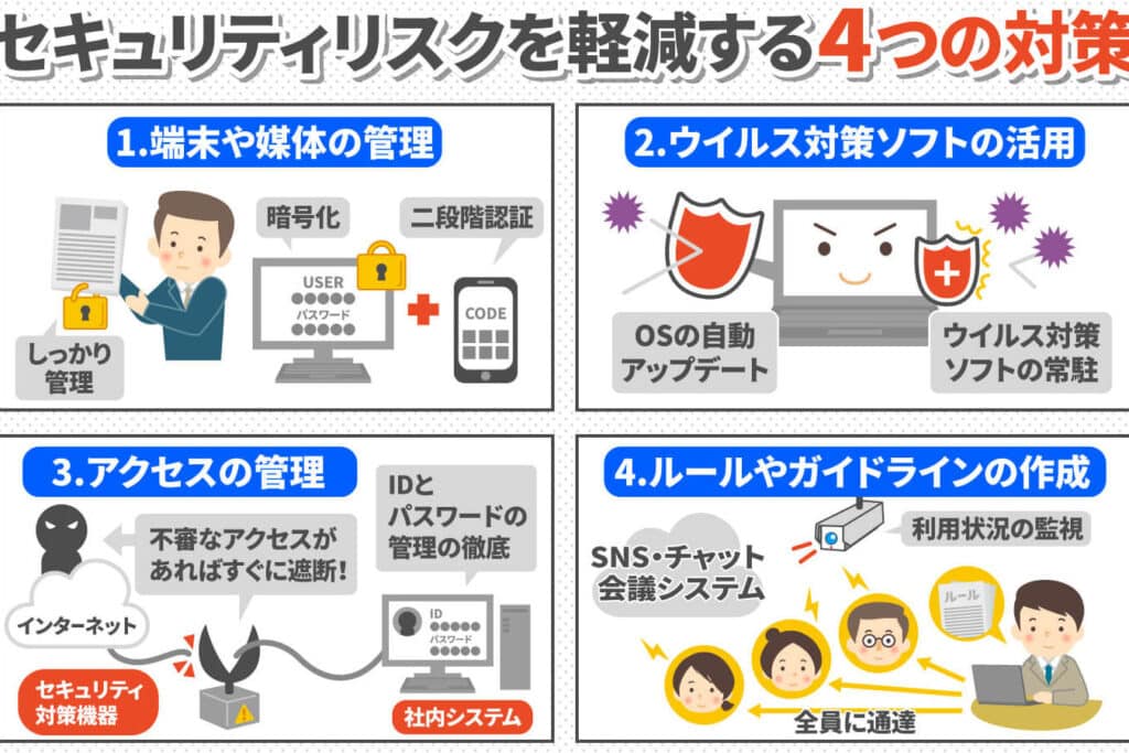 セキュリティリスクに対する対策には、以下のことが必要です。