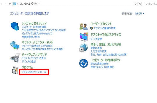 - プログラムと機能をクリック