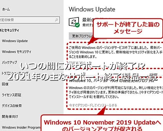 Windowsのサポートが終了すると、マイクロソフトは新機能の提供を中止し、既存の機能もリリース以前の状態に戻す場合があります。このため、OSを使用するうえでさまざまな制限が発生する可能性があります。